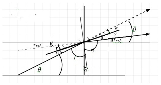 The mirror is characterized by an incident angle i, the reflected angle r, and assuming that the system is in the vacuum, the mirror is inclined from the horizontal axis by an angle , which, according to Figure 4, is such that