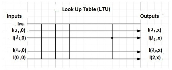 From Equation (9), let be the intensity at the diffraction grating output slit; the intensity of the field at P as shown in Figure 3 is given by