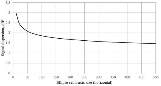 To specify the size of ellipse semi-axes and the value of the threshold, a brief evaluation of the trace signal dispersion in a monotonous area was performed. First, it is necessary to determine the size of the desired ellipse’s axes. In order to conduct this, the threshold value is set to zero, and fitting is performed on a monotonous segment of the trace. The resulting trace is then analyzed. Figure 5 shows the dependence of signal dispersion on the size of the horizontal semi-axis.
