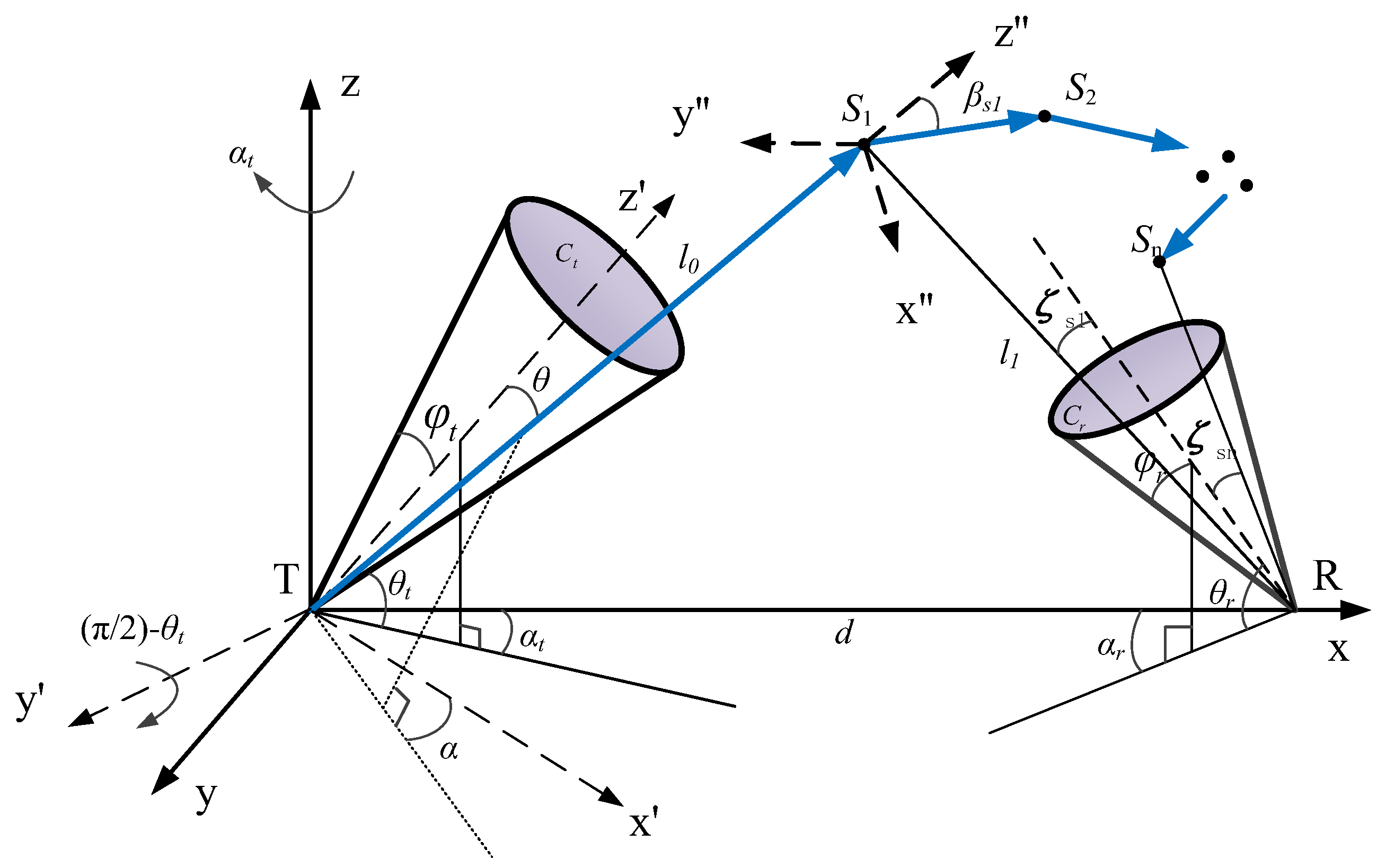 - Cao, T.; Chen, S.; Wu, T.; Pan, C.; Song, J. Single-scatter channel impulse response model of non-line-of-sight ultraviolet communications. arXiv 2022, arXiv:2209.00992. [Google Scholar]
