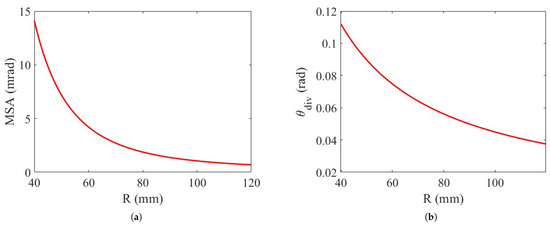 Impact of curvature radius on MSA and FOV. (a) The relationship between R and MSA. (b) The relationship between R and .