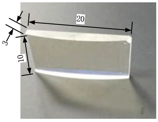 As can be seen from Table 5, from a theoretical perspective, the convex VBG obtained by optimizing the curvature radius and vector tilt angle (In Figure 1, represents the vector tilt angle. After optimization, was adjusted from 92° to 83°), which demonstrates improvements in both spatial and spectral resolution compared to a planar VBG. From an experimental standpoint, optimizing only the curvature radius can also enhance the spatial and spectral resolution of the VBG. (The convex surface was achieved through front-surface machining of the VBG, with the physical prototype shown in Figure 12).