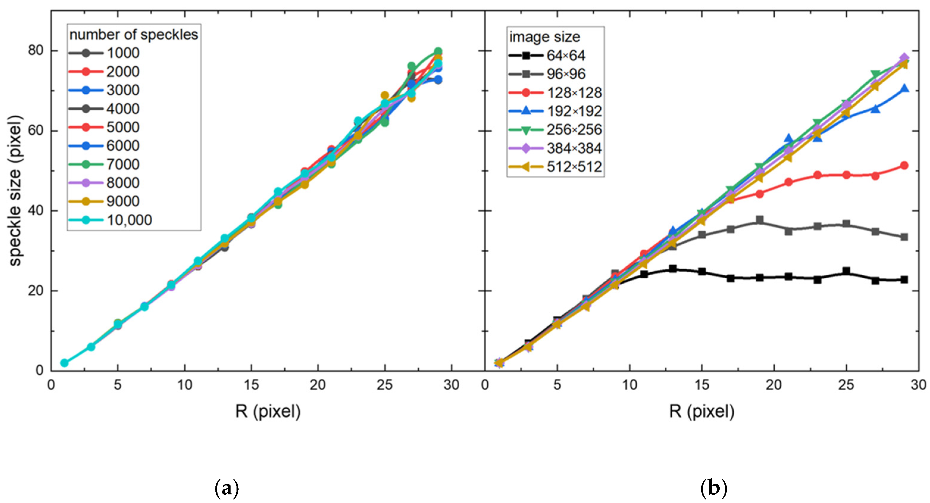 Figure 4a reveals that the speckle size scales linearly with