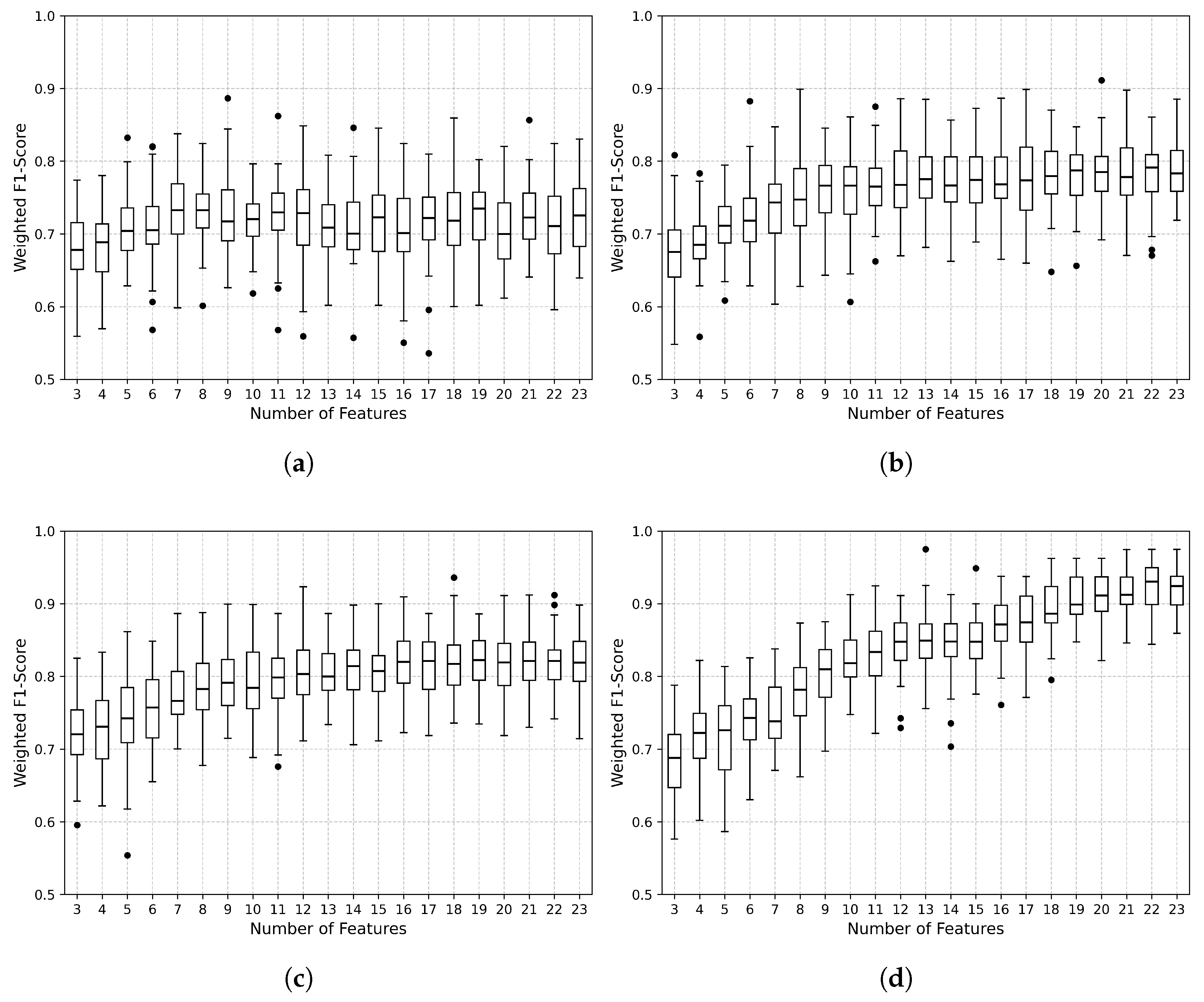 | ML Model | Mean of Weighted F1-Scores (23 Features) | SD of Weighted F1-Scores (23 Features) | Mean of Weighted F1-Scores (Enough Features) | SD of Weighted F1-Scores (Enough Features) |