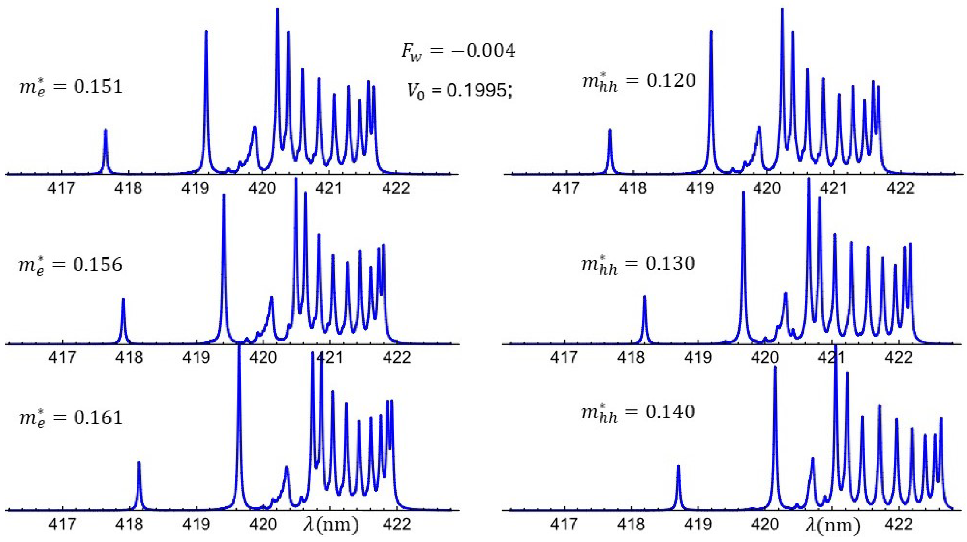 - Pereyra, P. Why the effective-mass approximation works so well for nano-structures. Europhys. Lett. 2019, 125, 27003. [Google Scholar] [CrossRef]