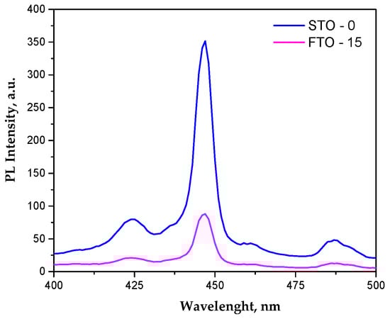 Photoluminescence spectra of STO and FTO-15.