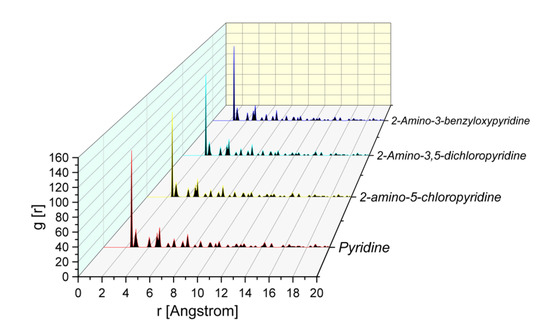 From Figure 5, it is evident that the pyridine compounds adsorb effectively on the MS surface. The molecules are oriented toward the iron surface in the position that allows them maximum contact with nitrogen atoms (as suggested by Mulliken charges). This conclusion is supported also by the analysis of the Radial Distribution Function (RDF) calculated for the atoms of the Fe(110) surface presented in Figure 7. The RDF has proven to be a useful means for the evaluation of the interaction of inhibitors with the surface [15].