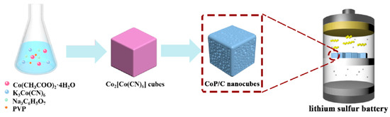 - Lin, J.; Zhang, K.; Zhu, Z.; Zhang, R.; Li, N.; Zhao, C. CoP/C Nanocubes-Modified Separator Suppressing Polysulfide Dissolution for High-Rate and Stable Lithium–Sulfur Batteries. ACS Appl. Mater. Interfaces 2019, 12, 2497–2504. [Google Scholar] [CrossRef]