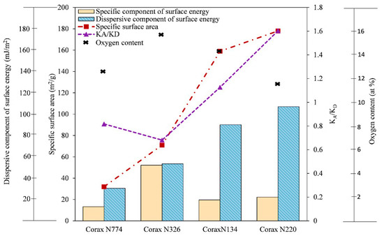 - Darmstadt, H.; Roy, C.; Kaliaguine, S.; Cormier, H. Surface energy of commercial and pyrolytic carbon blacks by inverse gas chromatography. Rubber Chem. Technol. 1997, 70, 759–768. [Google Scholar] [CrossRef]