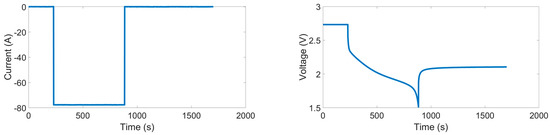 It is crucial to understand the lithium-ion batteries’ heat generation behavior notably during rapid discharging and charging conditions for different applications, specifically in electric vehicles. The aforementioned is necessary to construct a thermal management system for lithium-ion batteries. The present investigation studied the thermal management of a lithium-ion battery pack. The constant voltage and constant current method were employed to fully charge the lithium titanate oxide-based lithium-ion battery until an allowable voltage of 2.7 V and a cut-off current of 0.52 was achieved. Afterward, the lithium-ion battery was discharged with a constant current including 39 A, 52 A and 65 A until a cut-off voltage of 1.5 V was reached. A full discharge cycle was applied to the lithium titanate oxide battery as shown in Figure 4. The corresponding heat generation of the lithium titanate oxide battery for different discharge rates is demonstrated in Figure 5.