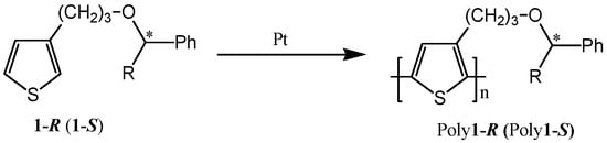 - Lemaire, M.; Delabouglise, D.; Garreau, R.; Guy, A.; Roncali, J. Enantioselective chiral poly(thiophenes). Chem. Commun. 1988, 10, 658–661. [Google Scholar] [CrossRef]