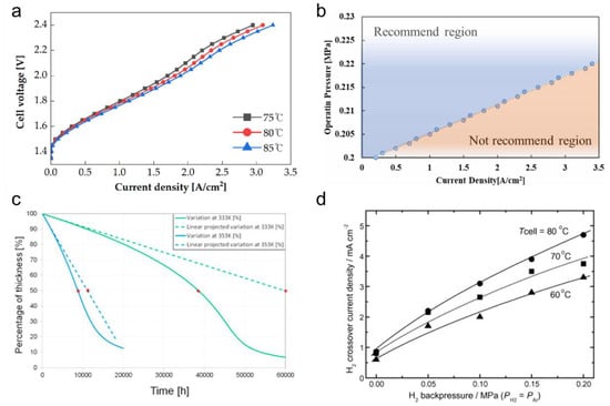 - Choi, Y.; Lee, W.; Na, Y. Effect of Gravity and Various Operating Conditions on Proton Exchange Membrane Water Electrolysis Cell Performance. Membranes 2021, 11, 822. [Google Scholar] [CrossRef] [PubMed]