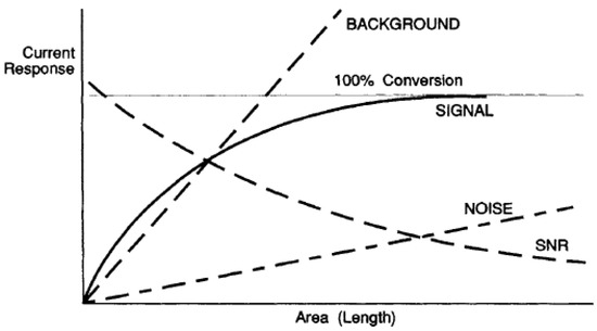 9] showing that with potentiometric control of the cell, an increase in the surface area of the working electrode increases both the signal level and the noise level. However, the noise level increases faster than the signal level; therefore, the signal-to-noise ratio decreases (