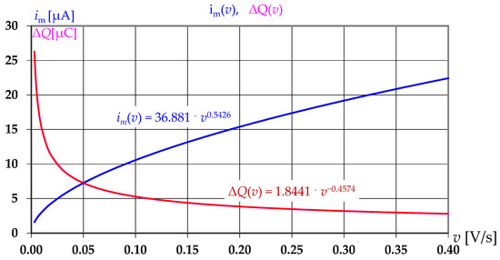 Figure 2 clearly demonstrate the opposite trends. As the sweep speed increases, the current amplitude increases, and the Faraday charge, which is a natural analytical signal, decreases. Accordingly, the conversion efficiency coefficient decreases. Consequently, as the sweep speed increases, the amount of information obtained decreases.