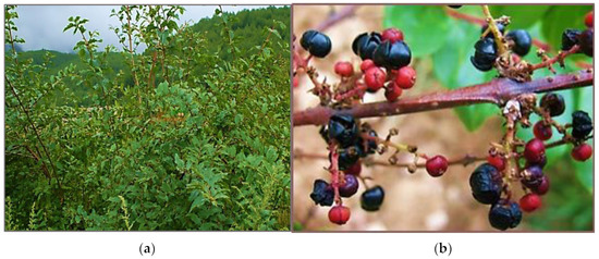Coriaria nepalensis is a common native shrub of the Coriariaceae family that grows around 1.5–2.5 m tall and is found in the western part of Nepal. The plant possesses rapid growth and higher environmental adaptability. The vegetative parts of the plant and fruit twig are shown in Figure 1.