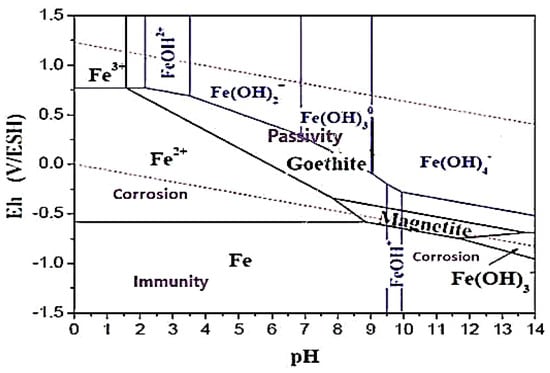 The Nernst potential, acidity constants, and solubility products are used to predict the thermodynamics of iron corrosion reactions in aqueous media using Pourbaix diagrams [11]. These diagrams show the stability ranges of the chemical species involved, but do not provide information on the reaction kinetics.