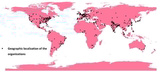 Geocoding of organizations cited in the 1220 articles analyzed.