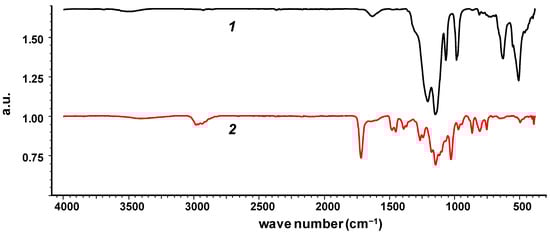 IR spectra of the MK-2 bilayer membrane, showing the PFSA layer (1) and the copolymer layer (2).