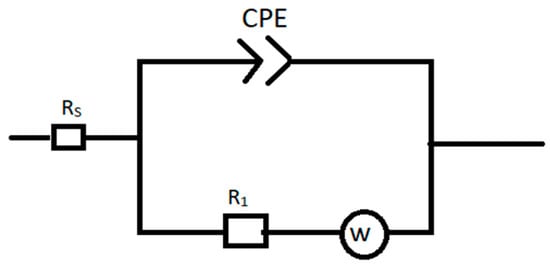 Electrochemical impedance spectroscopy (EIS) was performed to quantify impedance. This was accomplished by employing an alternating current potential with a 0.05 V amplitude across a frequency spectrum ranging from 100,000 to 0.1 Hz. The Nyquist plot in Figure 7 illustrates the relationship between the real and imaginary impedance values. The experimental spectra underwent fitting to an equivalent circuit model. Figure 8 illustrates the Rs (CPE(R1W)) configuration employed for this purpose. This model comprises solution resistance (Rs), charge transfer resistance (R1), Warburg diffusion resistance (w), and constant phase elements (CPE). CPE components were utilized instead of pure capacitors to account for the electrodes’ porous nature and the system’s distributed capacitive response. ZSimpWin 3.10 software (Echem, Ann Arbor, MI, USA) facilitated the fitting of experimental spectra to this equivalent circuit model. The charge transfer resistance (Rct) of an electrodes serves as a key metric for assessing the activation energy required for redox reactions. A higher Rct value corresponds to a greater activation barrier, while a lower value indicates a reduced barrier. In this investigation, the enhanced biofilm formation and electrochemical activity resulted in a lower Rct value of 1034 Ω for MFC-2, compared to 1595 Ω for MFC-1. It is noteworthy that the Rct value of MFC-1 was 54.25% greater than that of the modified anode MFC-2. Electrochemical impedance spectroscopy analysis revealed multiple arcs across various frequency ranges. The initial arc was observed at higher frequencies, spanning from 100 kHz to 630 kHz. In the case of MFC-2, a semicircular arc was detected at an intermediate frequency of 501 Hz. Furthermore, a low-frequency arc, oriented at an approximate angle of 45° on the complex plane, was identified. This latter arc is indicative of mass transport limitations and can be attributed to diffusional processes occurring within the system [35]. The area of the semicircle represents the impedance of the MFC [36]. The diameter of the semicircle, representing the electrode charge transfer resistance (Rct), provided insights into the charge transport mechanisms and phenomena occurring at the electrode–electrolyte interface [37]. Modification of electrodes was induced by acids, heat, and advanced electrochemical oxidization oxides [38,39]. MFC-2 showed a considerably lower charge transfer resistance than bare MFC-1. The lower charge transfer resistance could be attributed to an increased number of carboxylic groups, which benefited from the formation of an intense biofilm. This observation aligns with the cyclic voltammetry and polarization curve data, further corroborating that oxidized carbon felt is a superior choice for promoting anodic power generation, thus confirming the enhanced performance of MFC-2.