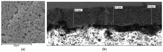 The use of scanning electron microscopy (SEM) can help to show the tightly packed nature and regular spacing arrangement of the metal nanoparticles on the working electrode surface of the sensor (Figure 2a). For all SEM measurements, the instrument model Jeol JSM-5610LV was used. Figure 2a has the scale shown at the bottom for reference. The darker areas indicate that the surface is not uniform and is indeed microscopically rough. This helps to explain the large calculated capacitance of the sensor. The Pt working electrode and the PTFE (polytetrafluoroethylene) semi-permeable membrane are shown to be in good contact with each other (Figure 2b), and so the interface can be considered uniformly accessible for the sake of the diffusion coefficient calculations. Even though the measured Pt thickness is shown to be non-uniform (Figure 2b), the difference of only 0.8 µm is considered small enough to be functionally ignored.