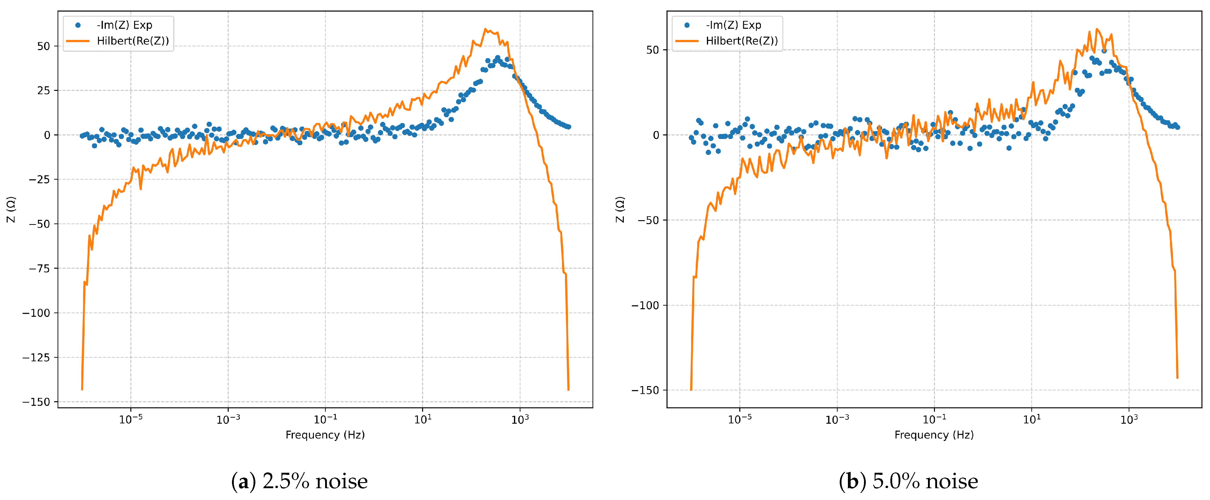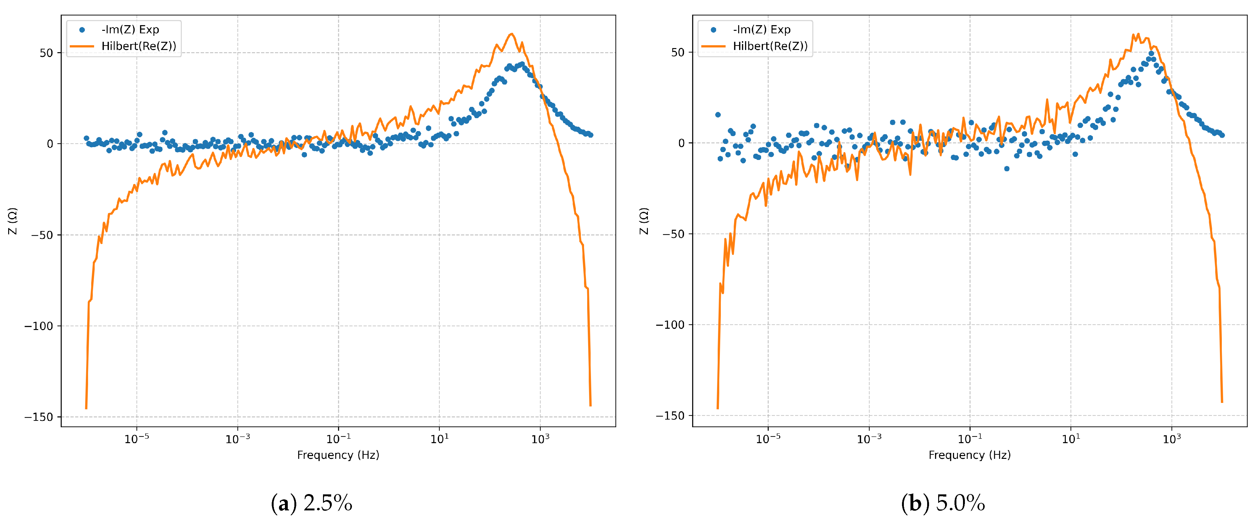 Kramers–Kronig validation (Hilbert transform) for the Randles+CPE model.