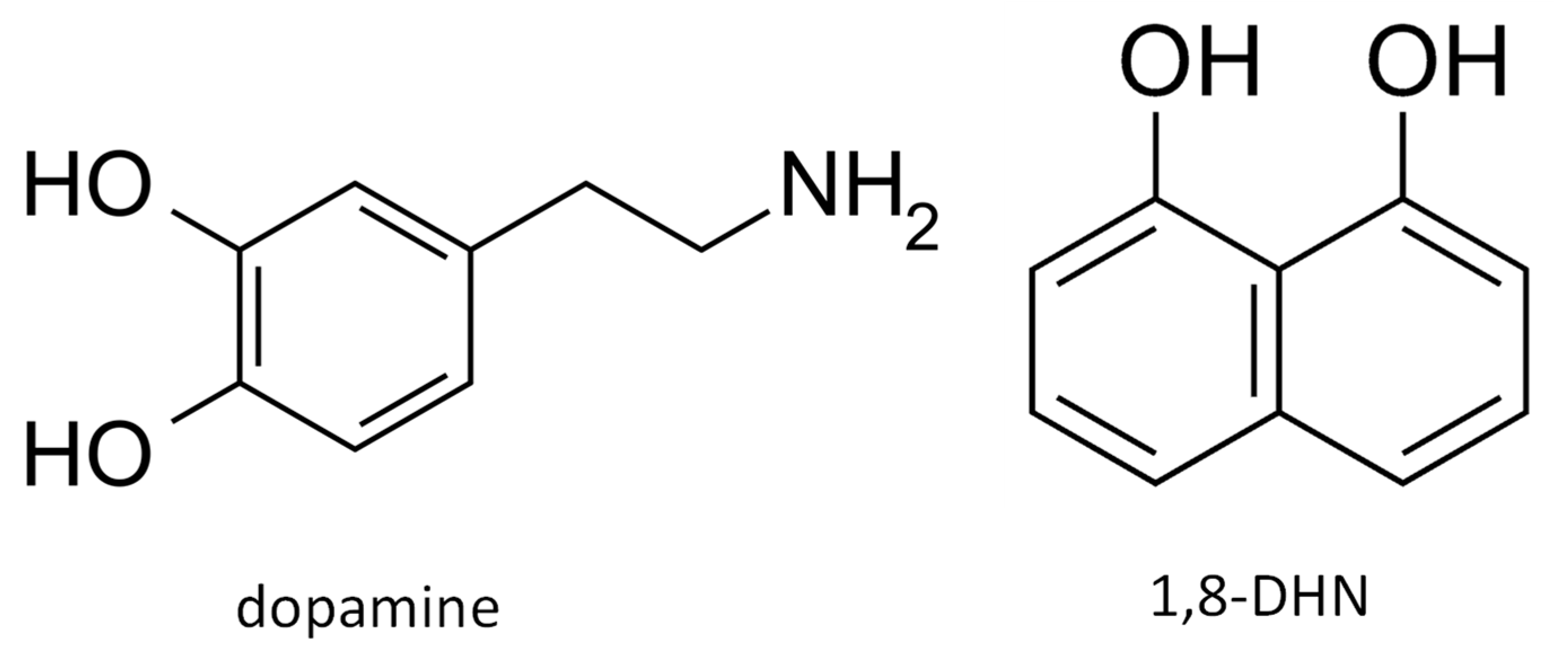 - DHNs, like most of the polyphenols (tannic acid being a noticeable exception [70]), cannot be deposited directly from solution whereas most of the catecholamines (DHI being an exception [61]) allow for film formation on the surface of almost all known materials in the presence of a strong enough oxidant.