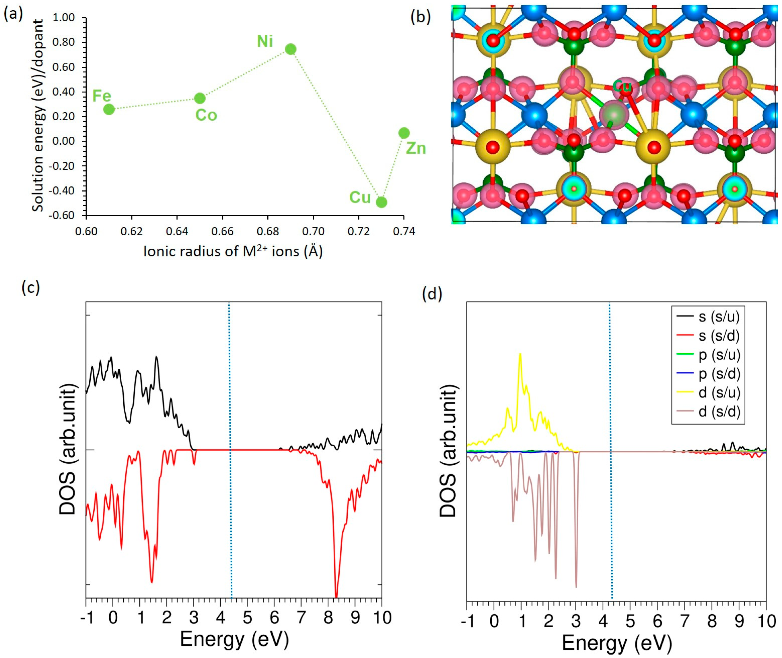 | Dopant (M) | Ionic Radius (Å) | M-O (Å) | Bader Charge on M (|e|) | Magnetic Moment (µ) | |