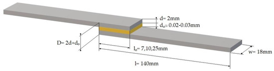 Aluminum adherends had dimensions of 140 × 18 × 2 mm, as shown in Figure 1, and were cut from a larger sheet using laser cutting technique. Adhesive joints made of non-anodized and anodized adherends were manufactured. The overlap lengths were 7, 10, and 25 mm, according to ASTM D1002-01. The epoxy resin/hardener system was placed in a vacuum chamber for 10 to 15 min to remove air bubbles. The epoxy adhesive was uniformly applied in a thin layer (approx. 20–30 μm) on one adherend surface and subsequently bonded to the second adherend under controlled pressure at room temperature conditions. Finally, the specimens were placed in an oven for the epoxy resin to cure. The curing profiles of the epoxy resins used were given above in chapter Section 2.1.