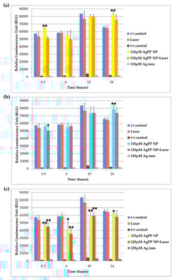 | 110 μM AgPP NP + Laser | 14 ++ | 11 -- | 15 -- | |