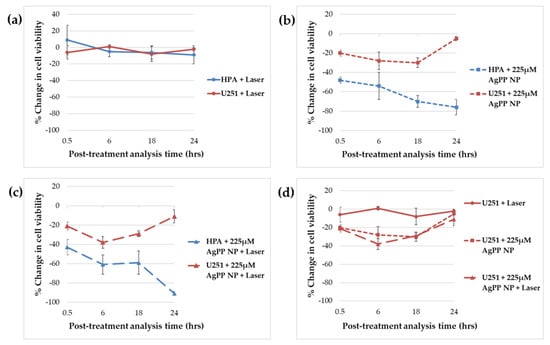 | U251 Cell Treatments | % Change in Cell Viability at Post-Treatment Analysis Time Points (Hours) | |||