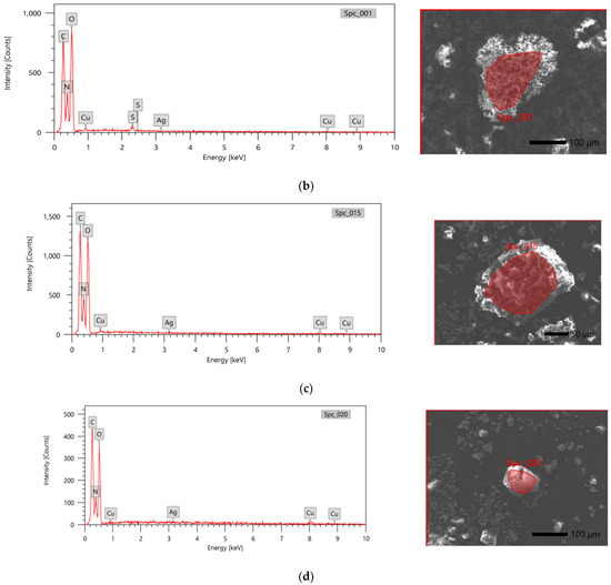 Table 1 indicated that oxygen, carbon, and nitrogen have maximum weight %, confirming that glycine is the base matrix of these single crystals. EDX spectrums of the doped crystals confirm the entry of both Cu(II) ion and Ag(I) ions into glycine crystal lattice.
