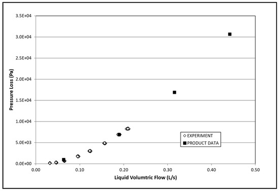 Measured pressure loss through coil versus Titus [19] technical product data.