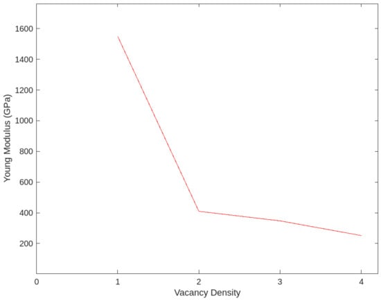 3.4. Effect of Vacancy Density on Young’s Modulus