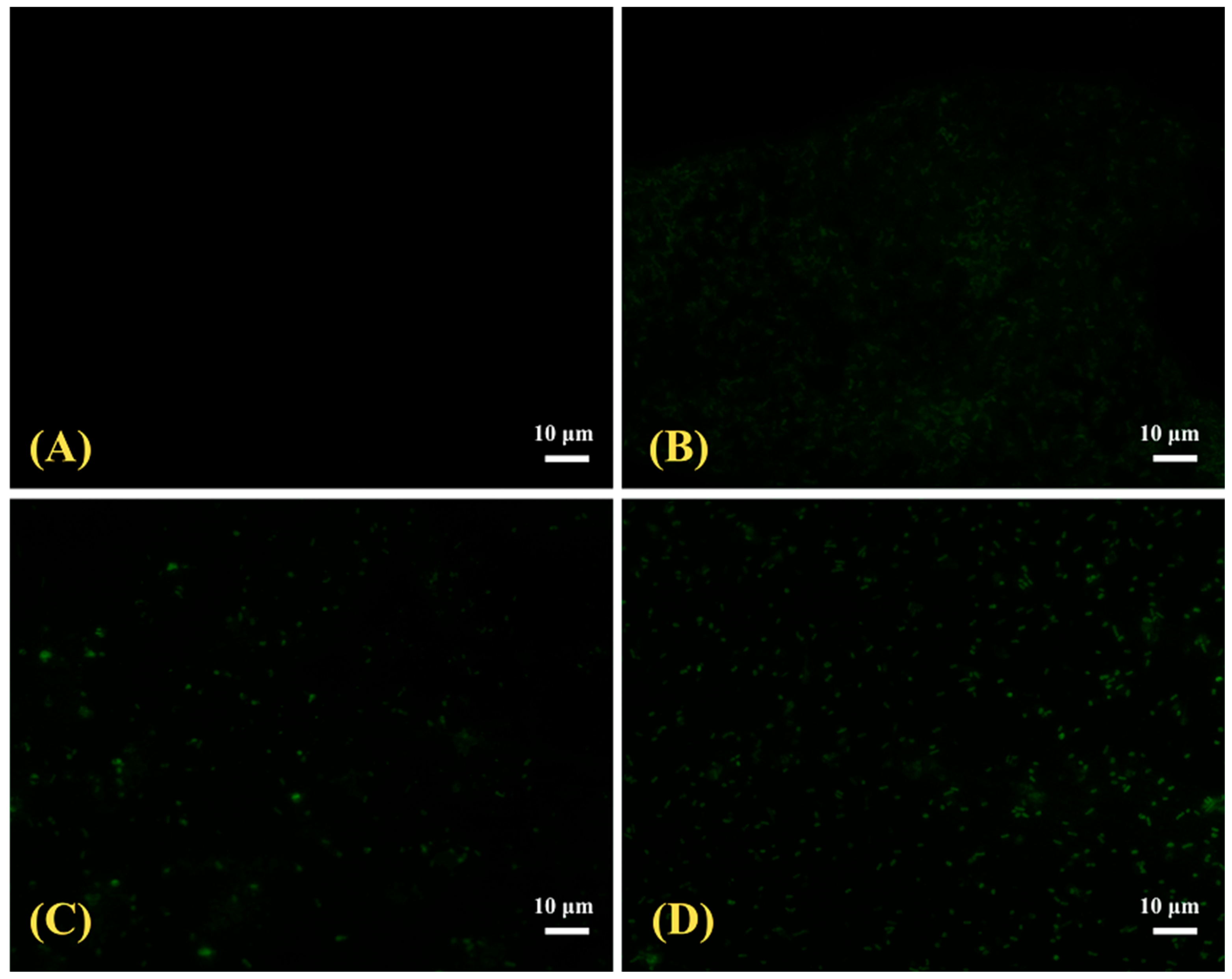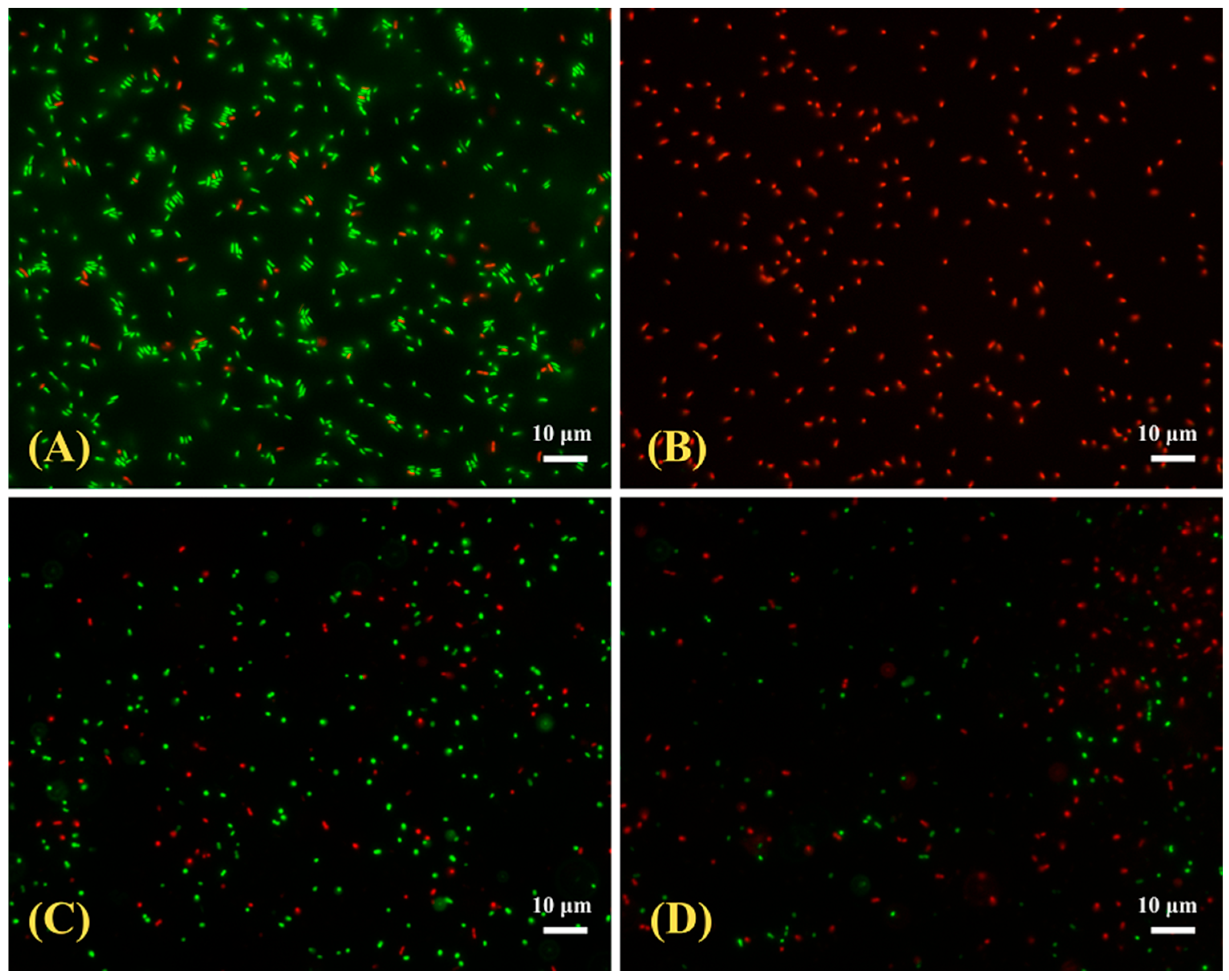 2.4.3. Live/Dead Fluorescence Assay