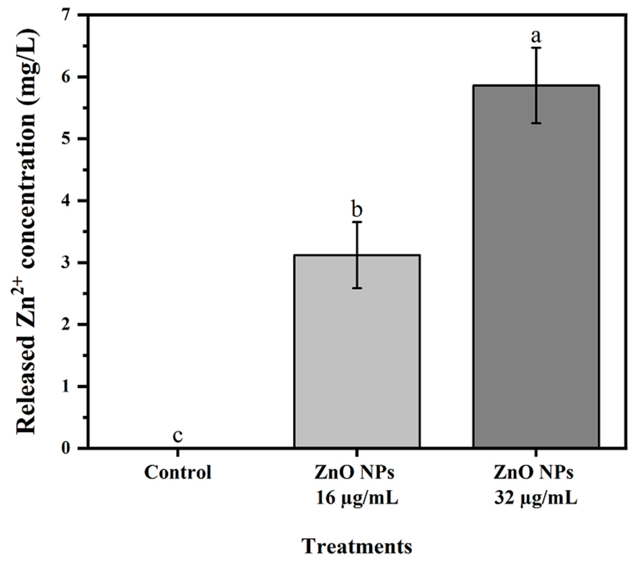 3.3. Antibacterial Mechanism of Commercial ZnO NPs: Evidence from Membrane Integrity, ROS Generation, Ion Release, and Ultrastructural Investigations