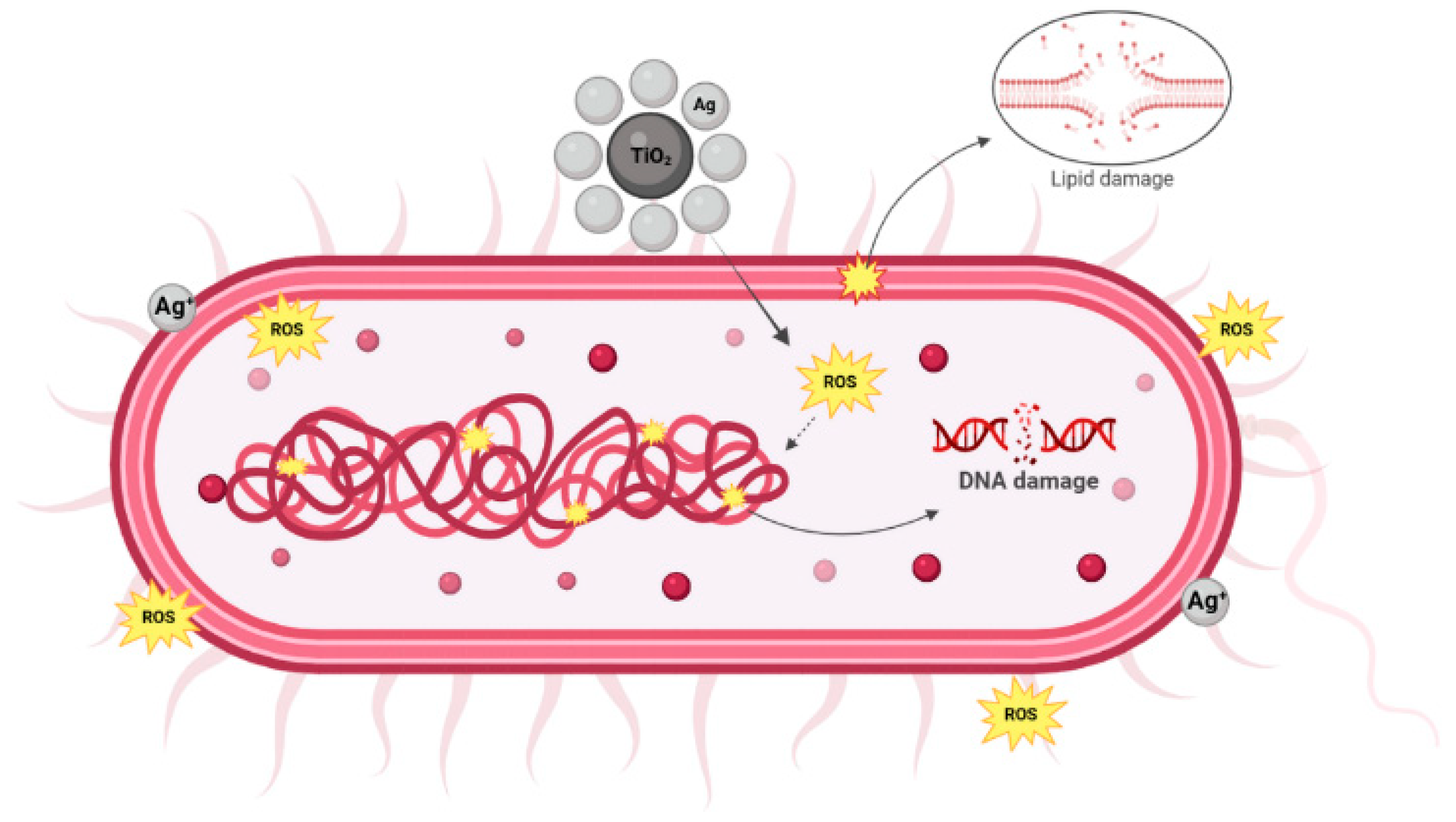 - Zarzzeka, C.; Goldoni, J.; Marafon, F.; da Silva, G.B.; Manica, D.; Bittencourt, P.R.S.; Bagatini, M.D.; Colpini, L.M.S. Ag/TiO2 Photocatalysts: A Promising Tool in Combating Bacterial Resistance. Biocatal. Agric. Biotechnol. 2025, 69, 103751. [Google Scholar] [CrossRef]