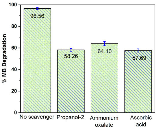 The role of radical scavengers in Al–ZnO photocatalyzed degradation of MB.