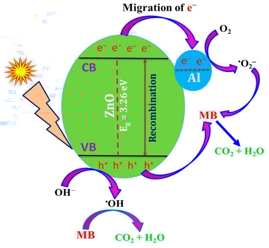 Photocatalytic MB degradation mechanism using 3% Al–ZnO nanoparticles.