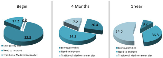 The average value of the KidMed index evolved from a score considered medium-high at the beginning of the program to an optimal value at the end (Table 7).