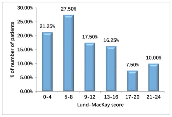Distribution of Lund–MacKay scores of study subjects.