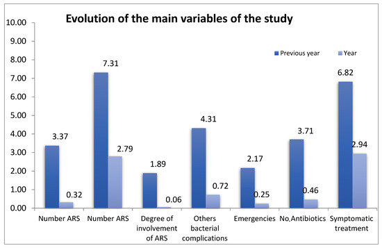 Table 5 shows the evolution of the patients with the number of ARS episodes in the previous year and the following year after the application of the nutritional program; ARS episodes per child and year were assessed. The evolution of other bacterial complications of the oropharynx is also exposed.