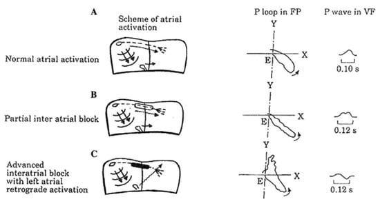 - Agarwal, Y.K.; Aronow, W.S.; Levy, J.A.; Spodick, D.H. Association of interatrial block with development of atrial fibrillation. Am. J. Cardiol. 2003, 91, 882. [Google Scholar] [CrossRef]