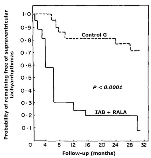 The first demonstration that A-IAB was a risk factor for supraventricular arrhythmias was the publication by Bayés de Luna et al. [5] who demonstrated that patients with A-IAB presented in a short-term follow-up, a high incidence of atrial fibrillation/flutter compared to the control group who presented with P-IAB. In the following 15 years, it some groups published articles that confirmed these results [42,43].