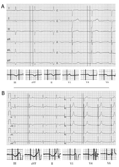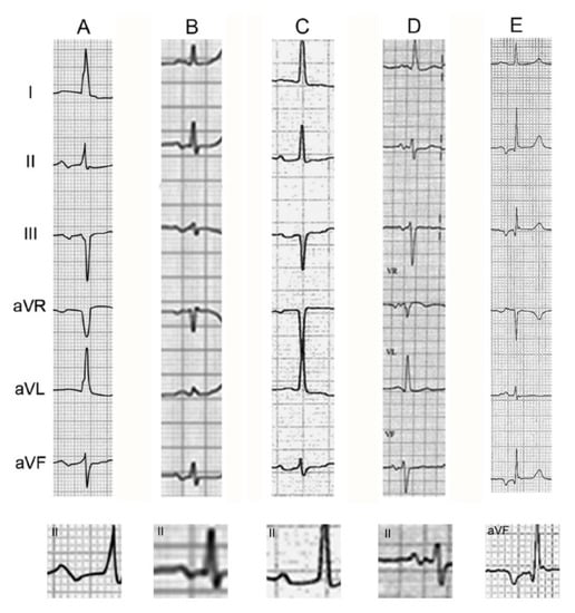 - Bayés de Luna, A. Clinical Electrocardiography; Wiley-Blackwell: Hoboken, NJ, USA, 2012. [Google Scholar]