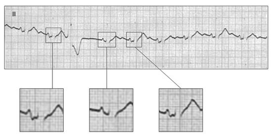 - Chung, E.K. Aberrant atrial conduction: Unrecognized electrocardiographic entity. Br. Heart J. 1972, 34, 341–346. [Google Scholar] [CrossRef] [PubMed][Green Version]