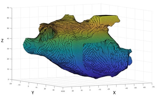Simulation and modeling have been popular in AF research for many years. Many researchers have been involved in the development of mathematical and simulation models of AF to understand it better. The first computer (cellular) model of AF was proposed back in 1964 [10]. There are basically two models widely discussed in the literature—the detailed electrical current propagation model and the simplified (2 variables) exponential model. The simplified model reduces the number of the large equations (as in the detailed model), and it can be solved for exact solutions. On the other hand, the detailed model is very sophisticated and characterized by its stiff equations (usually requires numerical solutions). However, it can certainly explain the electro-physiological incidents in an atrial cell much better than the reduced one. Both of these models are deterministic in nature. However, in real life, AF initiation is highly random, and thus, a stochastic modeling is more justified. Some models, however, can be very complex and computationally expensive in most cases. For simulation purposes, a good atrial mesh is necessary. Figure 3 shows a left atrial mesh modeled from magnetic resonance imaging (MRI) data shared by comprehensive arrhythmia research and management (CARMA), Center for Integrative Biomedical Computing (CIBC) and National Institute of health (NIH).