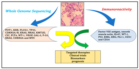 - Antonescu, C. Malignant vascular tumors—An update. Mod. Pathol. 2014, 27 (Suppl. 1), S30–S38. [Google Scholar] [CrossRef]