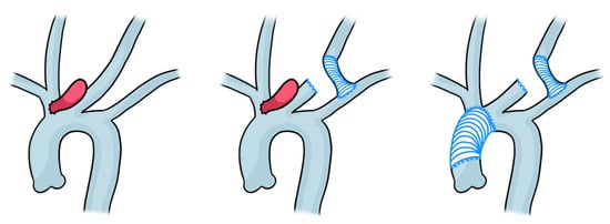 For the MA of the thoracic or abdominal aorta, a variety of surgical strategies are now described. Endovascular methods compete with open surgical synthetic graft implantation to replace the aneurysmal zone as the preferred treatment modality [