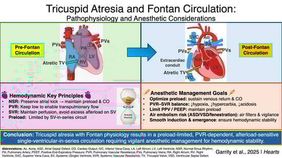 APA StyleGarrity, M., Poppers, J., Richman, D., & Bacon, J. (2025). Tricuspid Atresia and Fontan Circulation: Anatomy, Physiology, and Perioperative Considerations. Hearts, 6(4), 30. https://doi.org/10.3390/hearts6040030