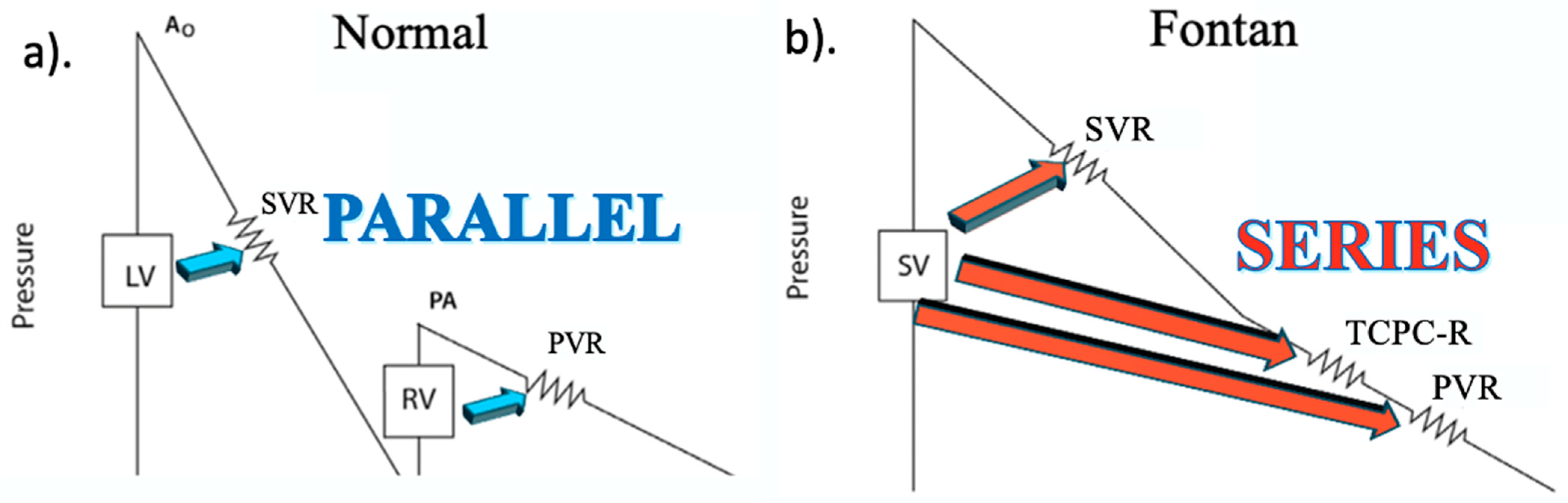 - Redington, A. The Physiology of the Fontan Circulation. Progress. Pediatr. Cardiol. 2006, 22, 179–186. [Google Scholar] [CrossRef]